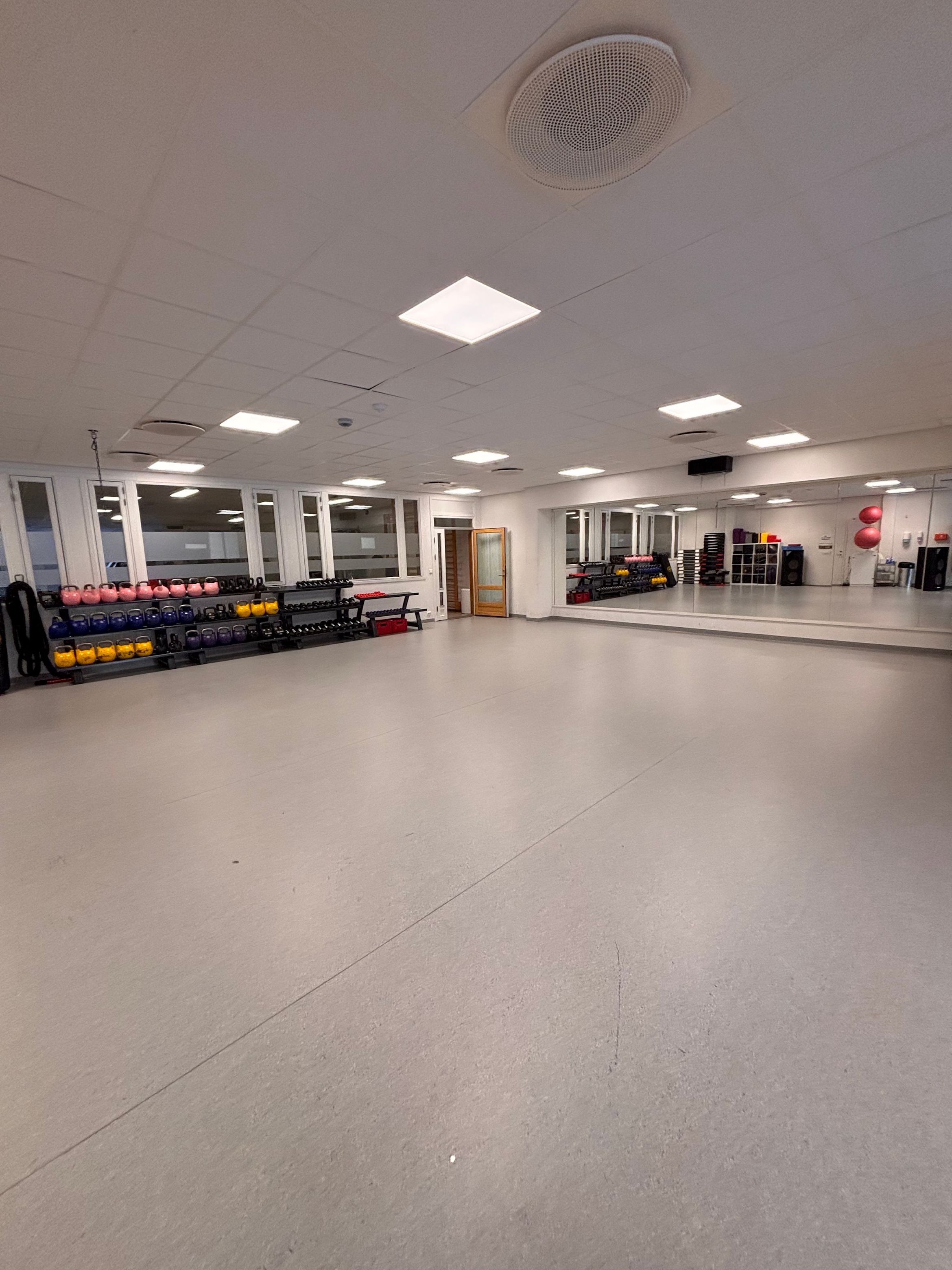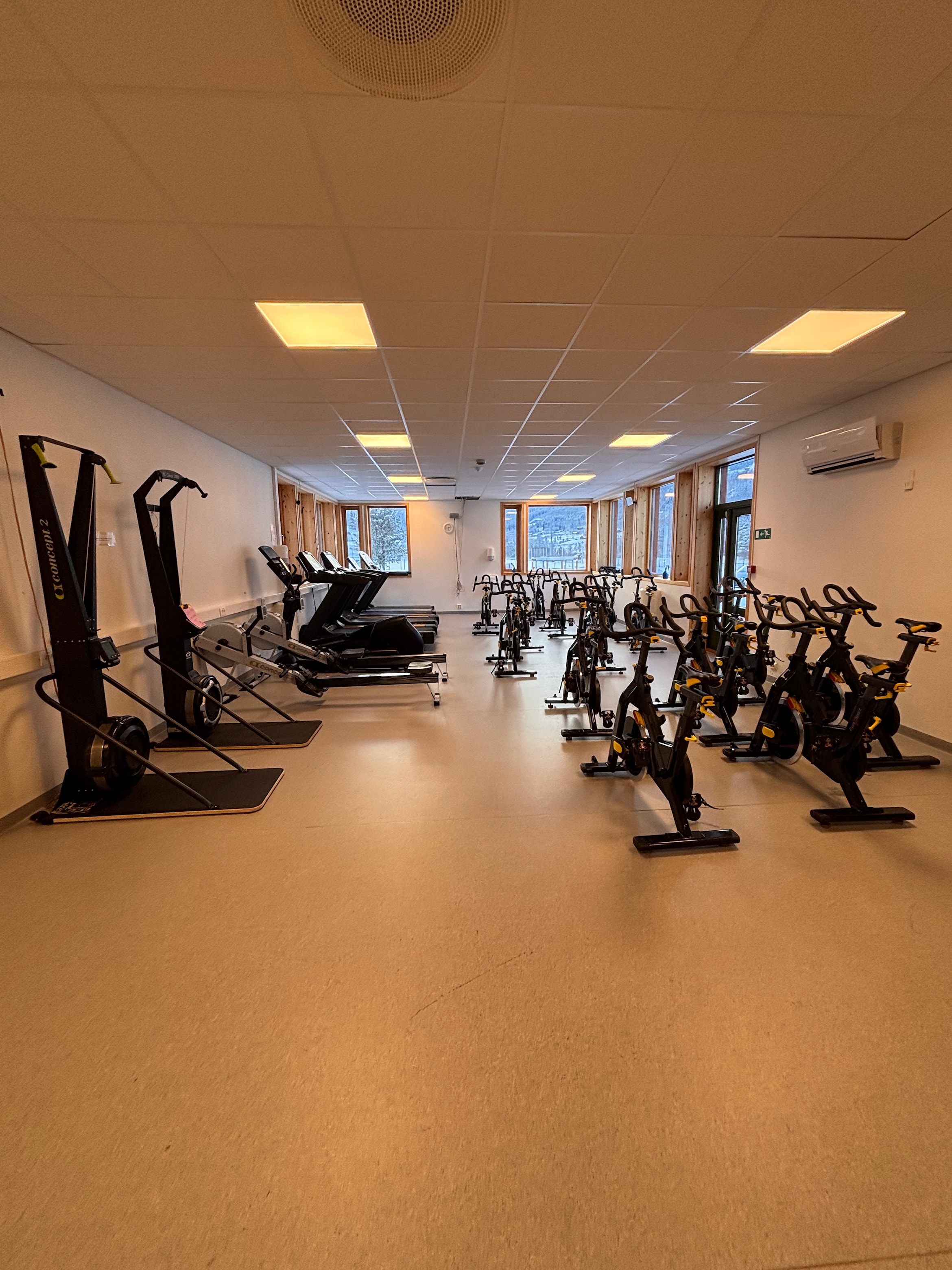 Rommet har også tilgang til dusj- og garderobe fasiliteter, som gir en praktisk løsning før og etter trening.